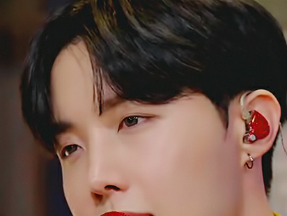 J-Hope, que había estado enterrando su rostro, inclinó ligeramente la cabeza y mordió el lóbulo de la oreja de la protagonista femenina.