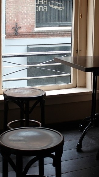 La heroína y yo, que corríamos a toda prisa, acabamos en un café.