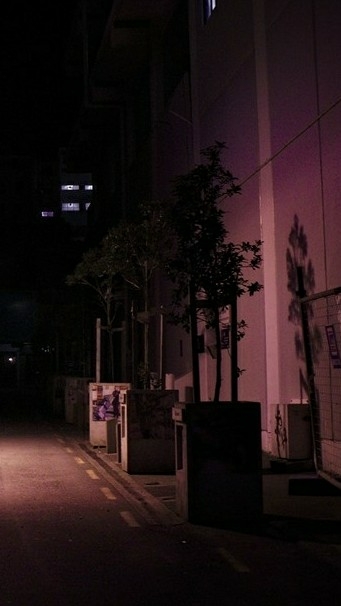 Una mujer que camina por un camino oscuro en la noche habla consigo misma.