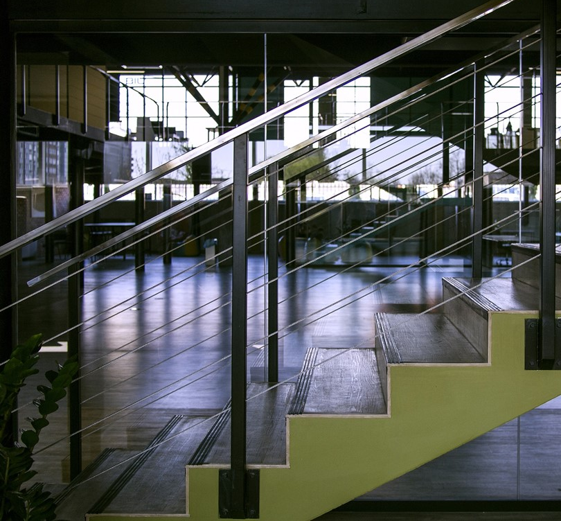 Delante de la empresa así.