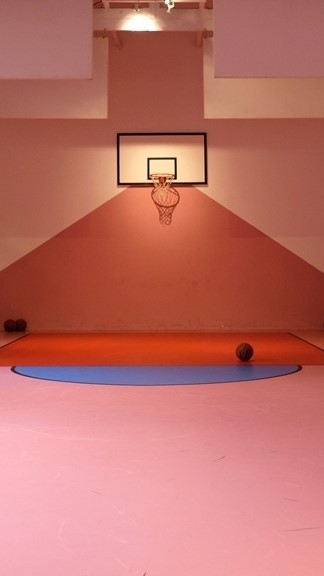 Tan pronto como Wheein se despertó, se cambió su uniforme escolar a su uniforme de gimnasia y fue al auditorio.