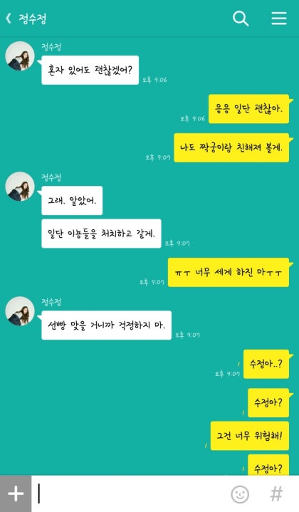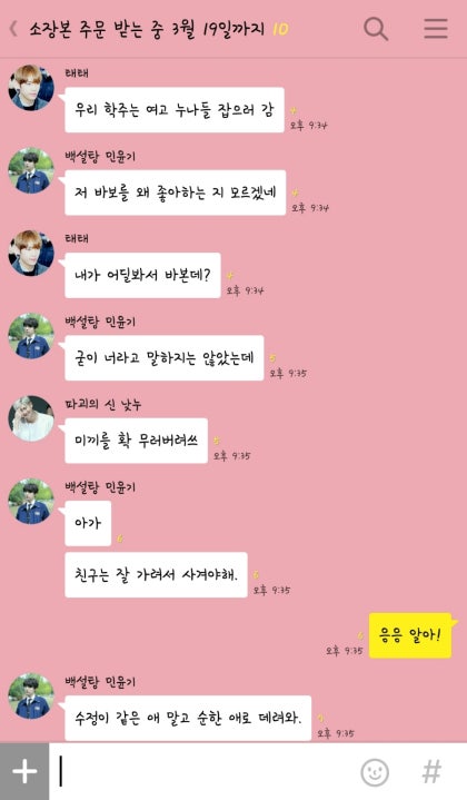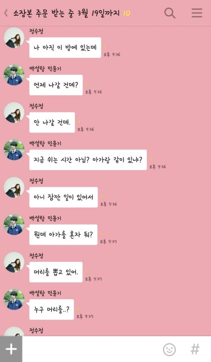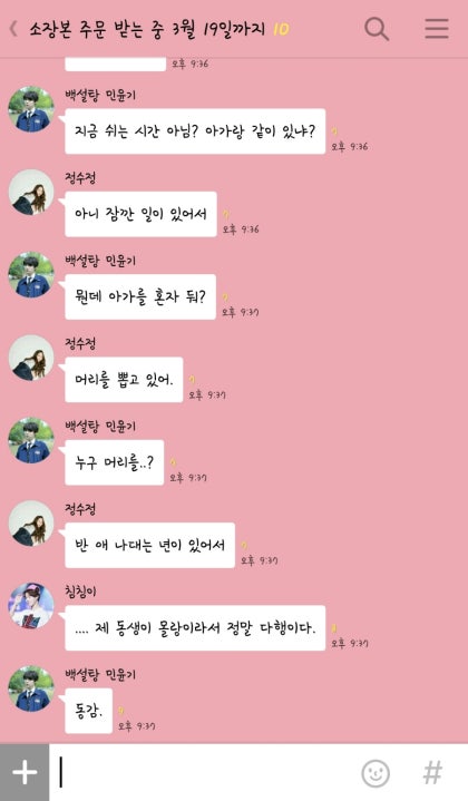 '또 여동생이랑 카톡중이십니까? 정국씨."