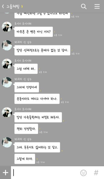 혹시나 그럴 일은 없겠지만. 큰 병이나. 아니, 절대 그럴 일은 없잖아. 그렇지? 남준이 호석의 양 어깨를 잡으며 소리를 지르자 호석이 손가락으로 입술을 막으며 남준을 진정시킨다.