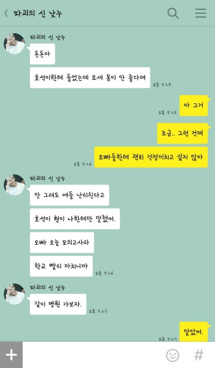호석의 말에 남준은 표정을 굳히며 고개를 끄덕였다. 내일 가보도록 할게. 고마워. 남준아. 진짜 고맙다. 호석의 고맙다는 말에 남준은 아무렇지 않게 웃어보였다.
