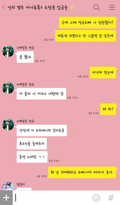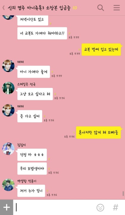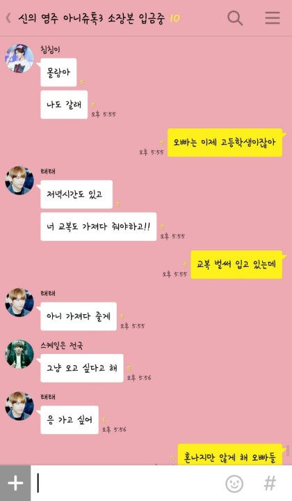 "태형오빠, 진짜 여중 교복치마 입고 여기까지 온 거야?"