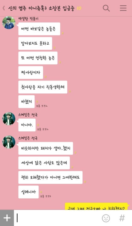 "아. 지민이가 나를 희생시켰다니까."