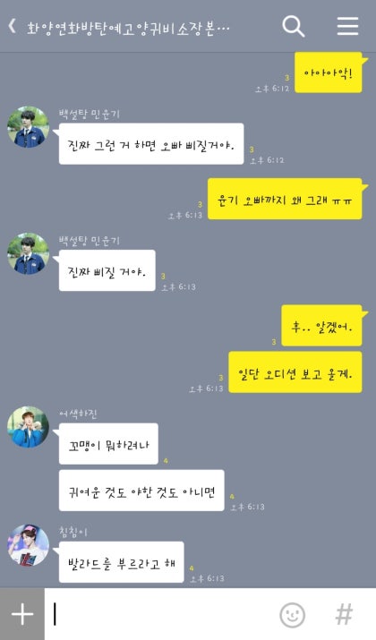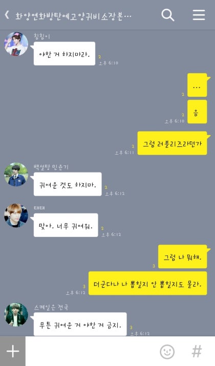 정국오빠는 애써 웃음을 숨기며 웃었다는 걸 부인했다. 이렇게 끝낼 수 없다. 내가 이래도 안 웃어?