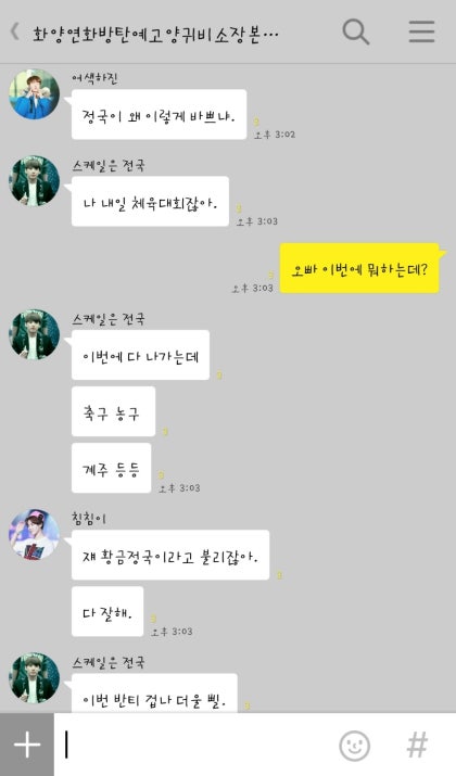 "그래. 남준오빠 지나가고 나서 이유 설명해줘서 참 고맙다."