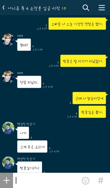 태형과 지민은 여동생과 카톡을 한 이후로 영 심란해보였다. 특히나 태형은 시들어버린 벚꽃을 분홍빛 벚꽃이라고 말하던 때의 여동생의 모습이 떠올라 더욱 괴로웠다.