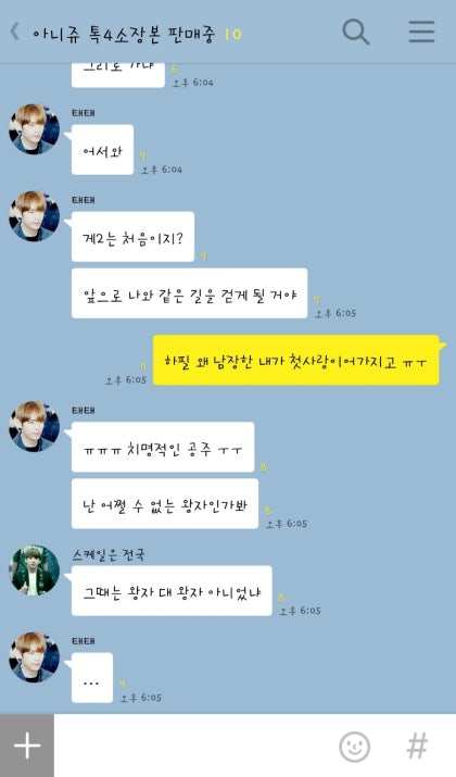 뭔데 정국오빠와 태형오빠 사이의 긴장감이 이렇게나 팽팽하단 말인가. 첫사랑에 이상형이라니. 이건 나라도 선택이 어렵다.