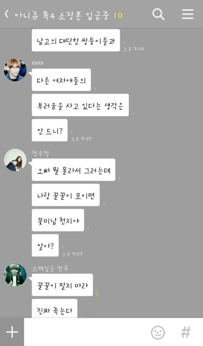 태형오빠랑 지민오빠랑. 내 애교섞인 말투에 지민오빠와 태형오빠는 실실 웃음을 지으며 나를 바라봤다.