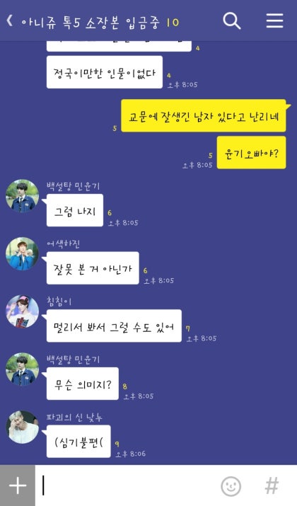 오빠의 등장으로 여학생들이 창가에 붙어서 교문을 바라본다. 어쩐지 뿌듯한 마음이 든다. 윤기오빠같은 오빠가 있다는 건 행복한 일이다.