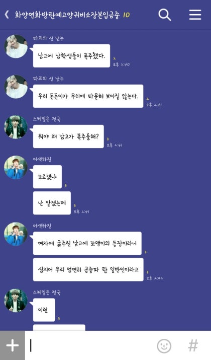 윤기오빠의 등장에 남학생들은 알아서 윤기오빠의 기세에 눌려 모세의 기적처럼 길을 틔워주었다. 윤기오빠는 대체 학교에서 뭘 하고 다니길래. 전교생이 이렇게 두려움을 느끼는가 하는 의문이 뒤늦게 머리통을 때렸다.
