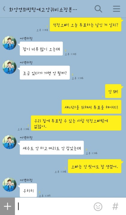 뽀뽀 세 번에 석진오빠는 매일 투표를 할 기세다. 어쨌든 석진오빠 투표 시키기 성공!