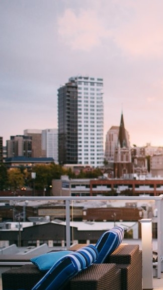 "여기서 몇 분 동안 좋은 공기 마시면서 기분 좀 풀고 내려오도록 해요"