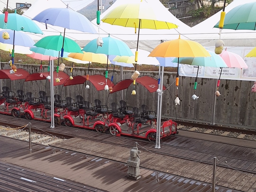 저희는 레일 바이크를 타러 왔어요!