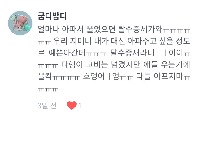 지민이는 이제 괜챠나여!!