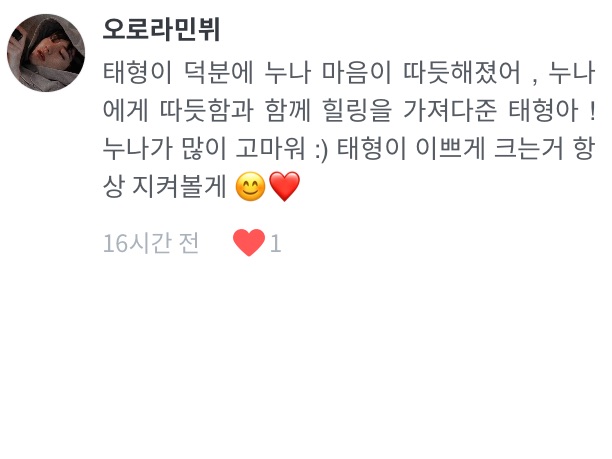 태형이두 누나 덕뿐에 마음이 따듯해져써여
