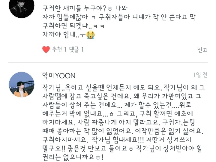 더 심해지면 작품이고 뭐고 신경 안쓰고 존나 지랄 할거니까 구취하지 마세요