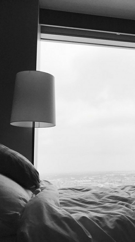 하며 침대에 털석 눕는다