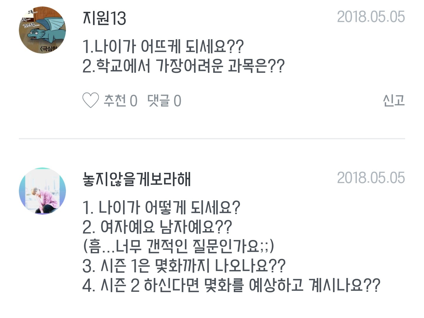 1번 나이질문..정말많네욬ㅌㅋㅋ저나이많아요