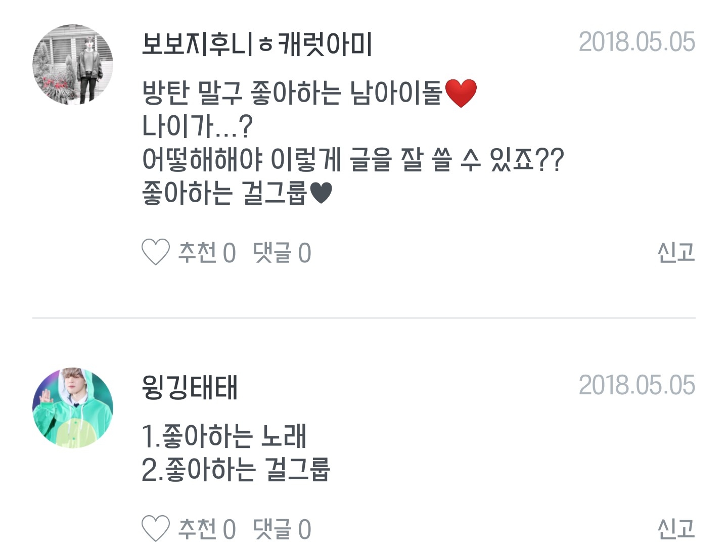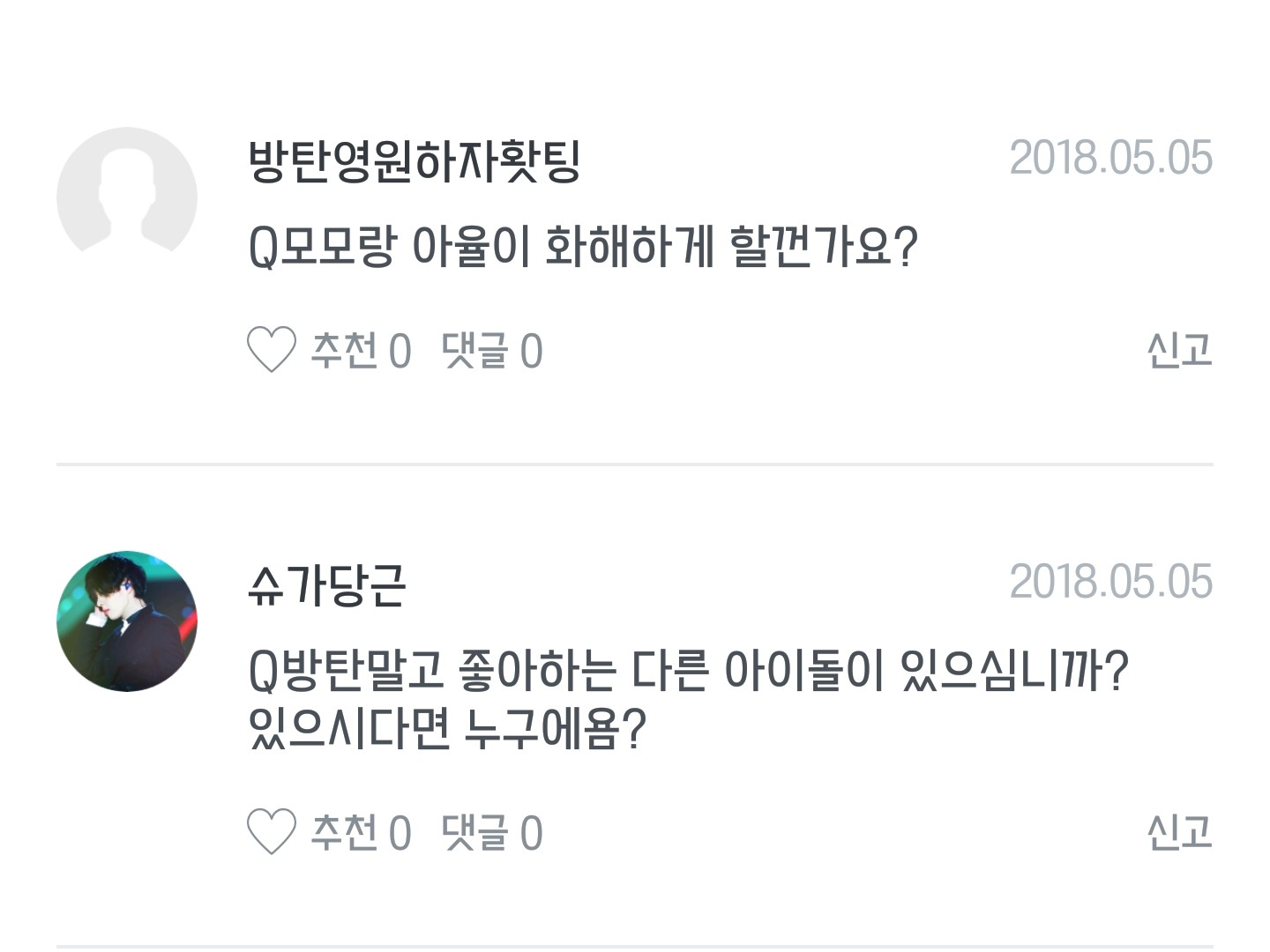 1번 저는 일단 방탄말고 좋아하는 아이돌은.없습니다