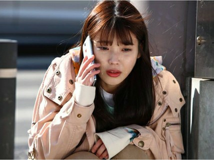 핸드폰을 보는 예주