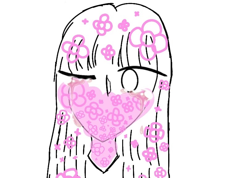 소녀의 눈에서 눈물이 볼을 타고 흘러, 꽃을 젖게끔 만들었다.