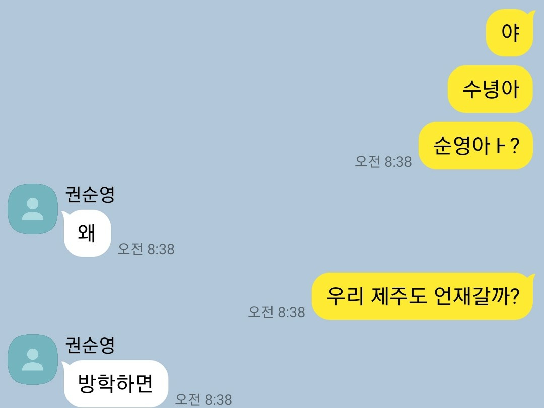 저는 저희반 애들 얼굴을 제대로한번 보고싶고, 친구랑 노래방 가고 싶네요 제발..