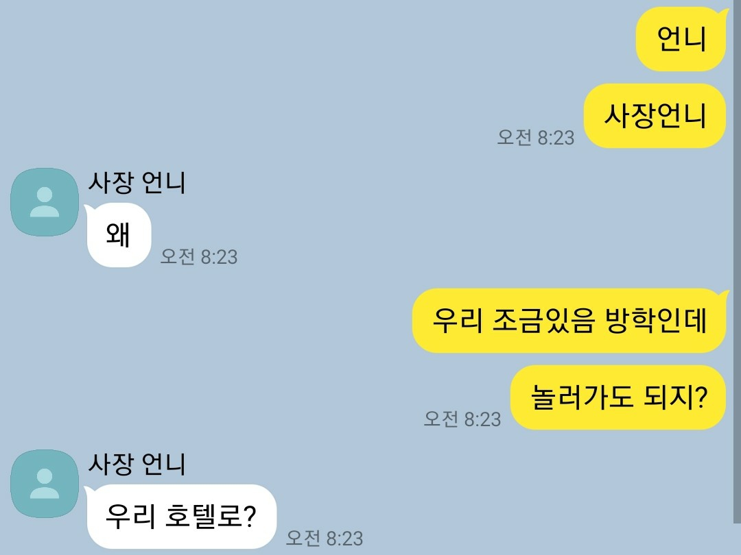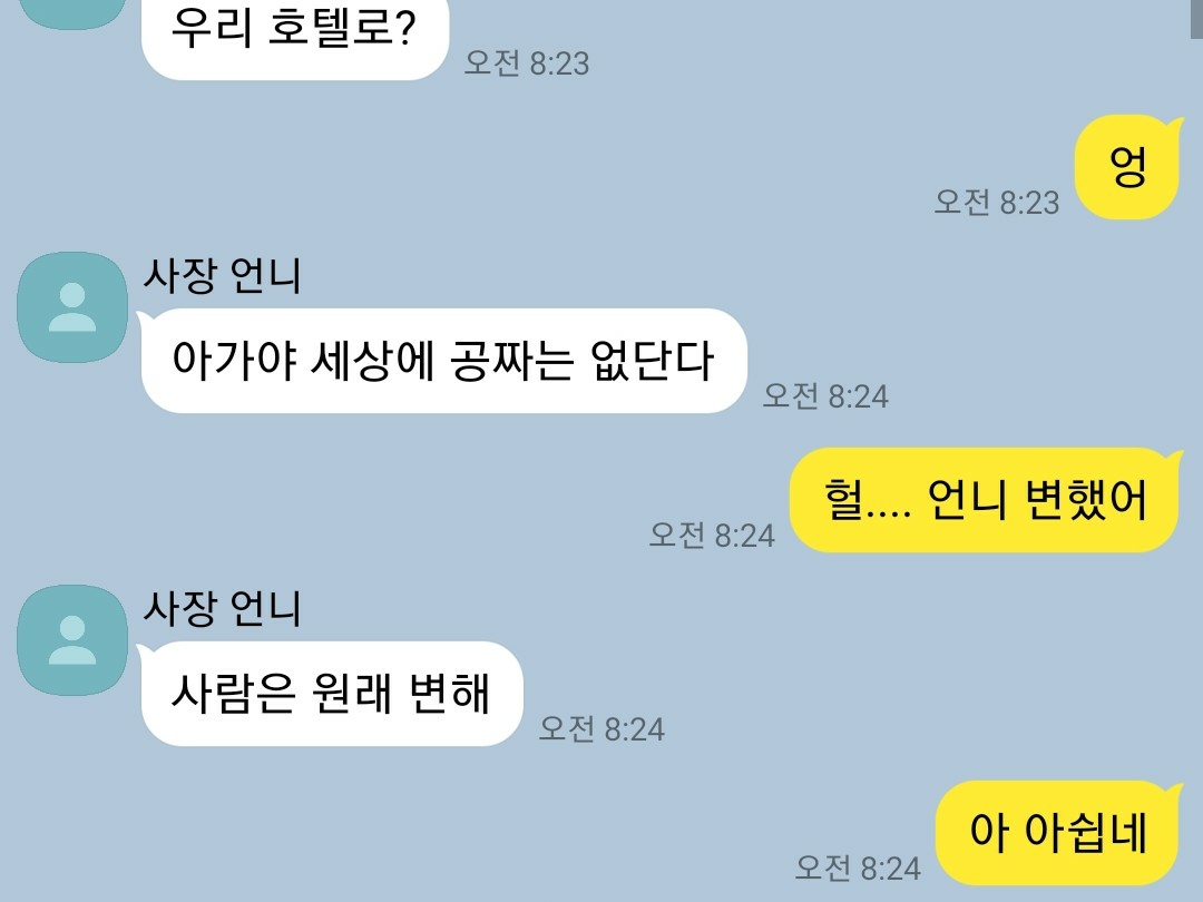 아는 언니가 제주도에서 호텔 운영하거든, 그 언니가 나한테 진빚이 좀 있어서