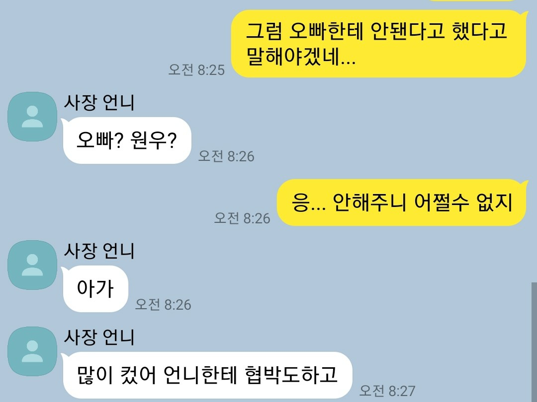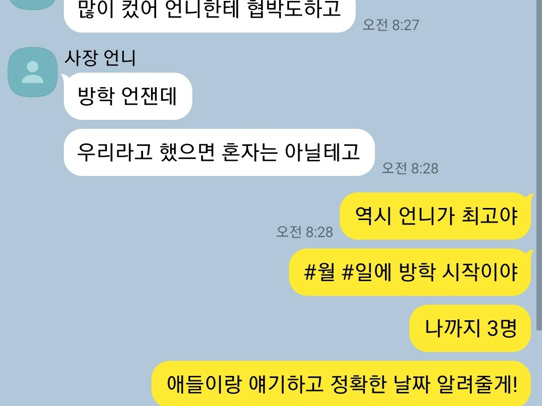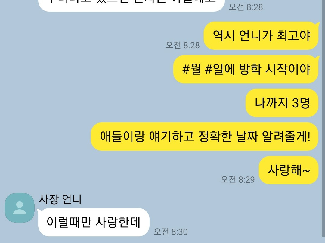 너 사장님이랑 친하잖아 몇일 쉰다하면 이해해주실거야