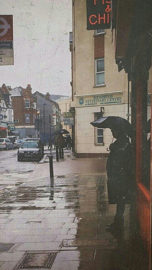 중간에 비가 오는 바람에 근처 은행 앞에서 비를 피하던 중이었다.