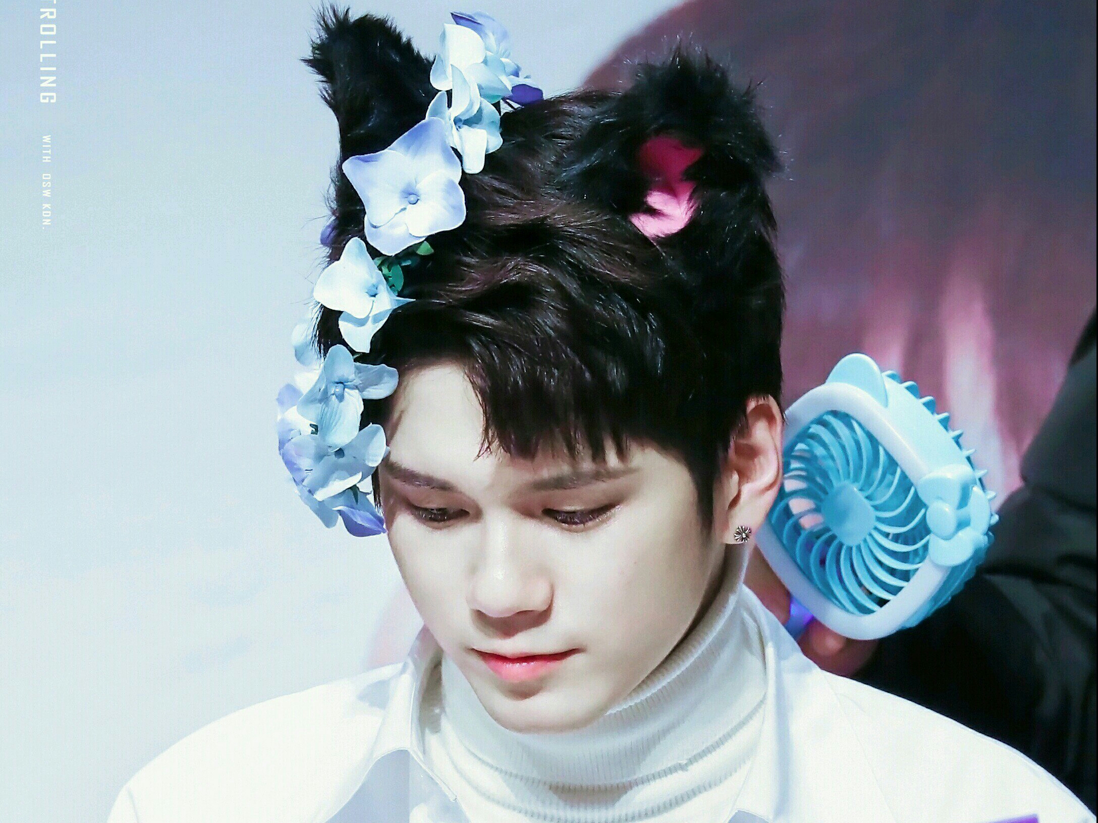 (머리를 쓰다듬으며) 귀엽네♡ 니엘이는 보면볼수록 강아지같아.... 으윽...