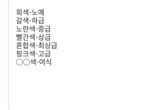 최상급-혼합색 혼합색은 높은 계급들의 색이 썩여져 있을수록 계급이 높아져