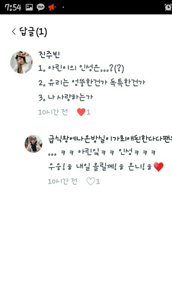 야! 잠만..온니?!ㅋㅋ 아린아ㅏㅏ 너 인성 어때?ㅎ^^