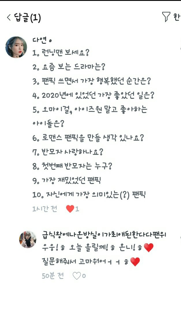 다음 질문!ㅎ♥️