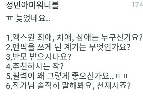 16. 좋아하는 아이돌 이유(전 질문 패스)