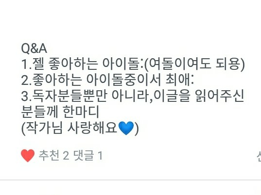 1. 젤 좋아하는 아이돌은?