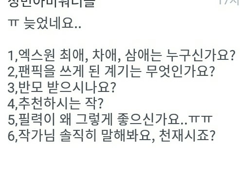 오늘은 큐엔에이 답변을 들고 왔습니다아