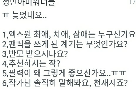 어..이런 제 모자란 글 읽어줘서 감사하구요 앞으로도 많이 읽어주세요(핱 뿅뿅)