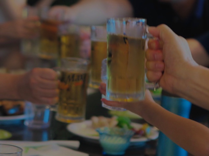자리를 잡기도 전 눈 깜짝할 새에 손에 쥐어진 생맥주를 동료들과 부딫치는 여주였다.