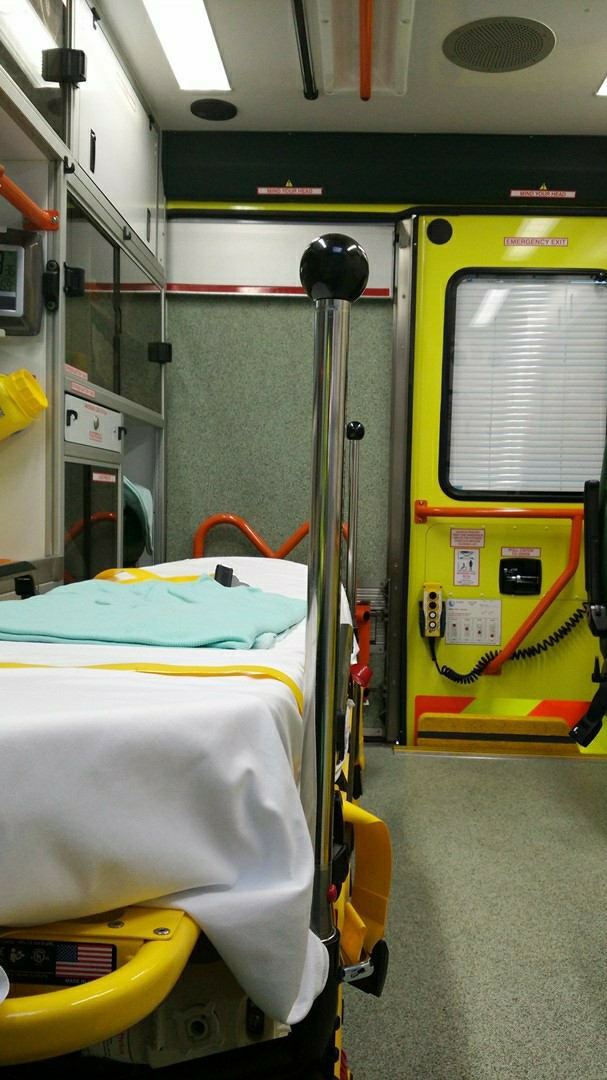 배에 통증이 느껴져 급히 구급차로 실려 가는 중이다