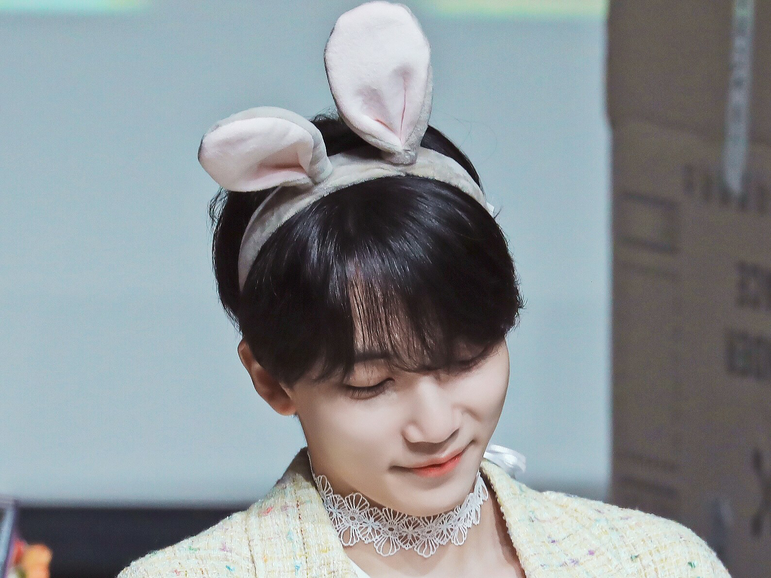 원우는 여주의 웃음에 마지못해 정한이 준 머리띠를 썼다