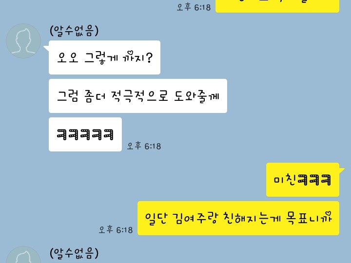 응!그래!앞으로 친하게 지내자!!