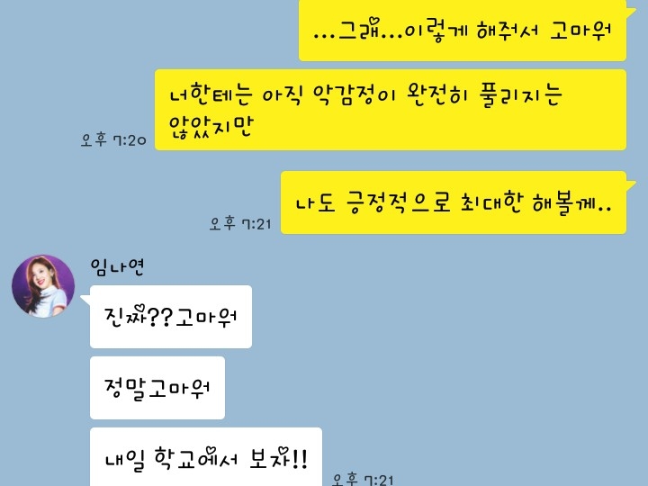 우리..다시 친해지기로했잖아...나도 노력할테니까..너도 노력해주면 안될까?