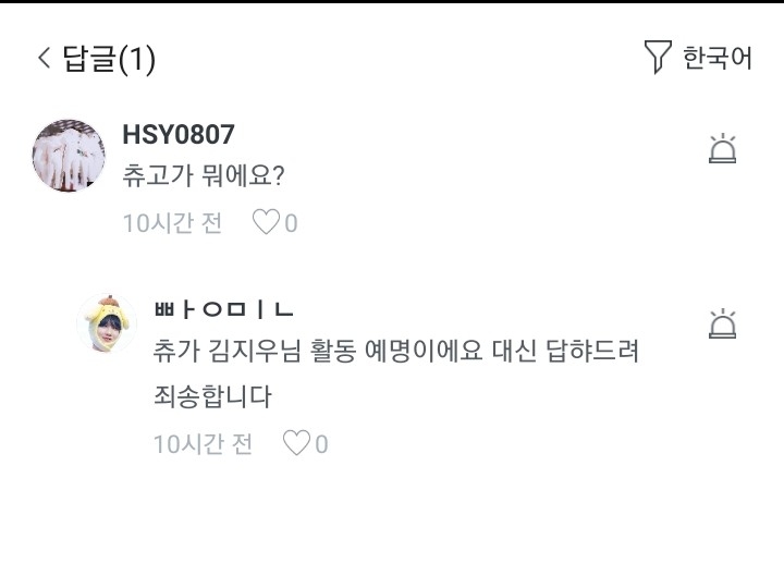 츄는 김지우님 활동예명이고요