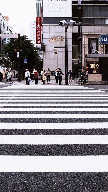 횡단보도 앞에서 수다를 떨던 우리를