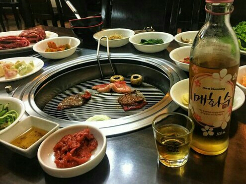 Y/N: 좋아! 저기서 뭐 시킬까? Jungkook: 삼겹살이 좋을 것 같아. Y/N: 아, 그렇구나. 넌 항상 삼겹살만 시키네.
