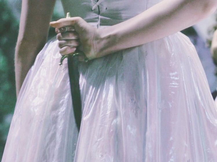 칼을 바닥에 내팽겨치고 콩콩대며 저택 안으로 들어가는 루시