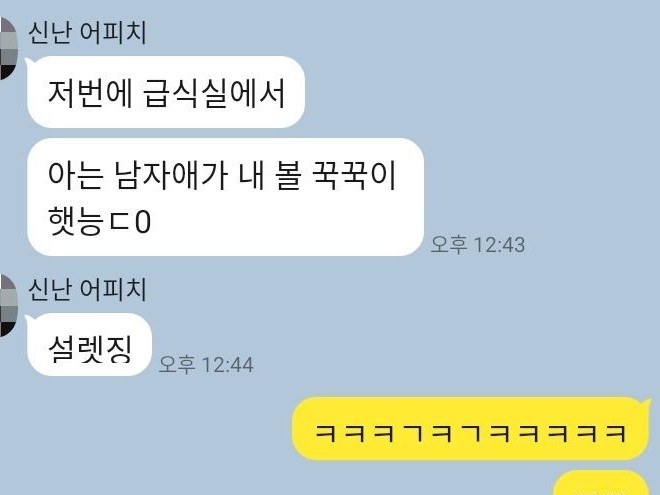 "어, 체육복 못 챙겼는데 아까 급식실에서 본 애옹선배님이 빌려줬어"